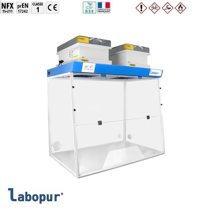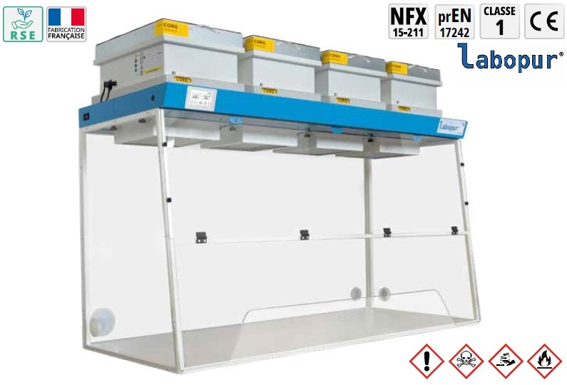 Les hottes chimiques de sécurité pour produits dangereux TRIONYX Labopur sont de fabrication française et homologuées à la norme NF X 15-211.