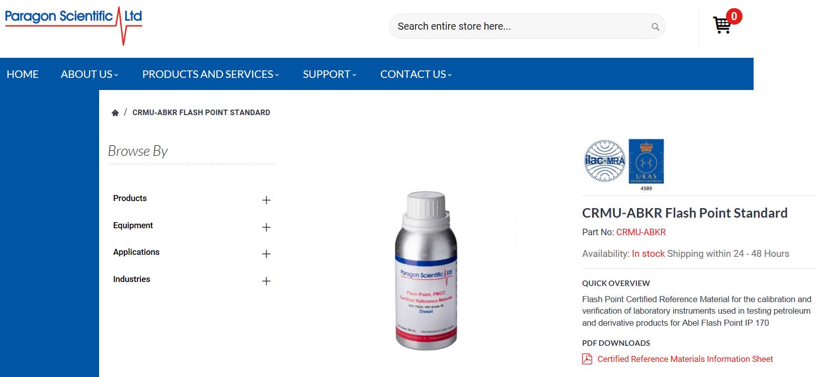 Etalons primaires PARAGON en point éclair Abel : les étalons primaires en point éclair PARAGON sont issus d’essais circulaires.