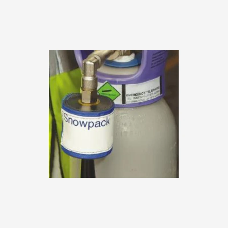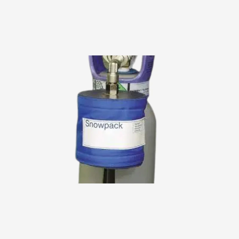 Le Snowpack Air Liquide est une machine à fabriquer des granulés individuels de glace carbonique à partir d’une bouteille de dioxyde de carbone à siphon, qui comporte un tube plongeur interne.