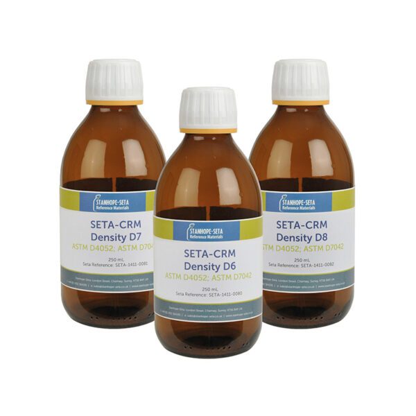 Les matériaux de référence SETA-CRM Density sont produits sous l’accréditation ISO 17034 UKAS et sont conformes aux normes ASTM D4052, ASTM D7042 et IP 638. La durée de conservation est de 2 ans à compter de la date de fabrication.