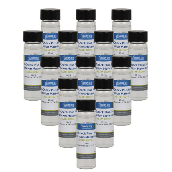 - SetaCheck FAME Calibration Set 15 ml (SA5501-0) : ensemble de 12 échantillons d’hydrocarbures; valeurs certifiées allant de 0% à 40%